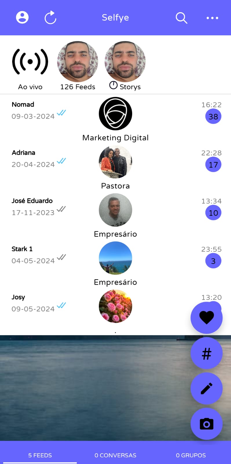 Então, as publicações de todas as contas seguidas por você vão aparecer na sua linha do tempo quando acessar o aplicativo do Selfye: