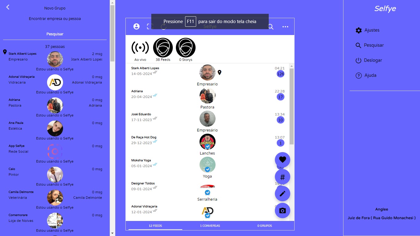 O Selfye você pode enviar e receber mensagens, audios, videos, documentos e diversos outros arquivos.